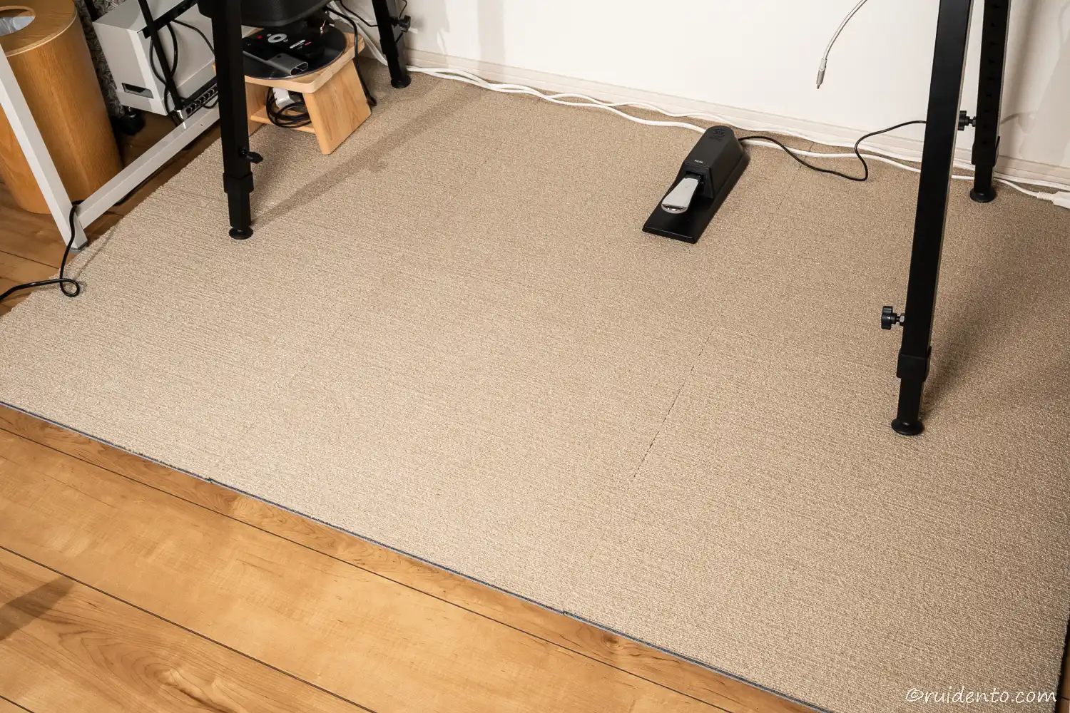 スタイリッシュなデザイン性にこだわる場合はあちらでも良かったのですが、厚み的には防音専科マットの方が優れており、なにより1枚ずつ拡張できるというのが大きなメリット。
